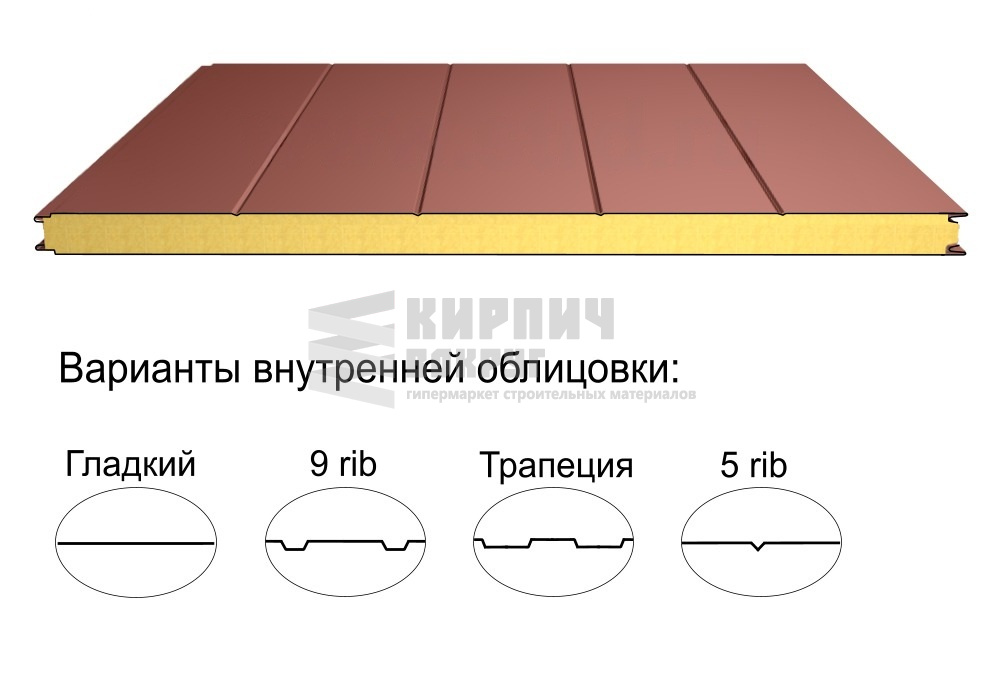 В интернет-магазине "Кирпич Вокруг" Вы можете купить Стеновая трёхслойная сэндвич-панель 5 rib 100мм 1000мм с видимым креплением минеральная вата Полиэстер Доборник в Уфе, а наши специалисты готовы вам помочь с выбором по адресу: , или оказать консультацию по телефону: .