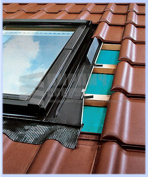 EZV-P - оклад для профилированных кровельных покрытий. Позволяет соединить окно с профнастилом, штучной черепицей, металлочерепицей с высотой профиля до 45 мм.